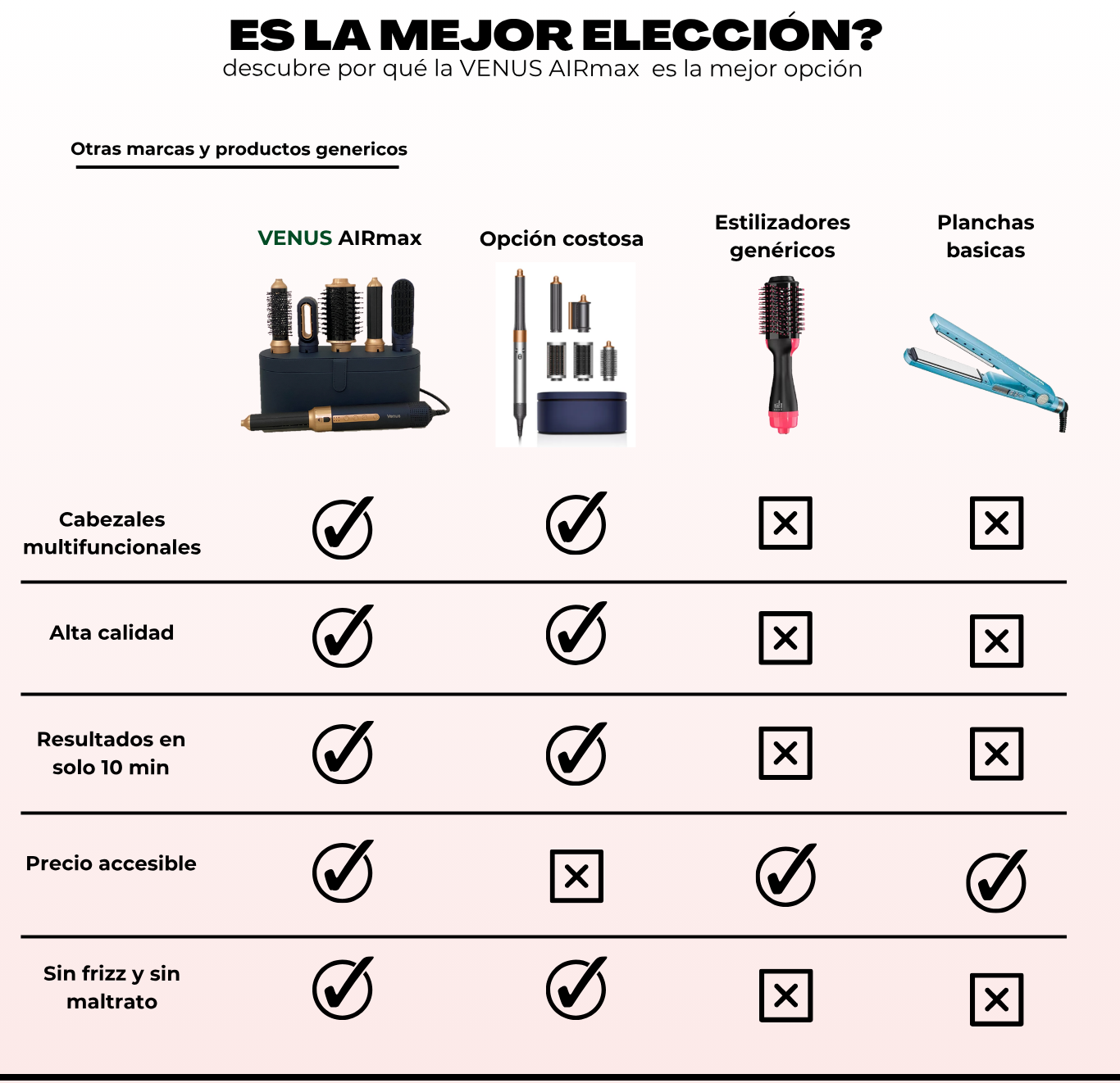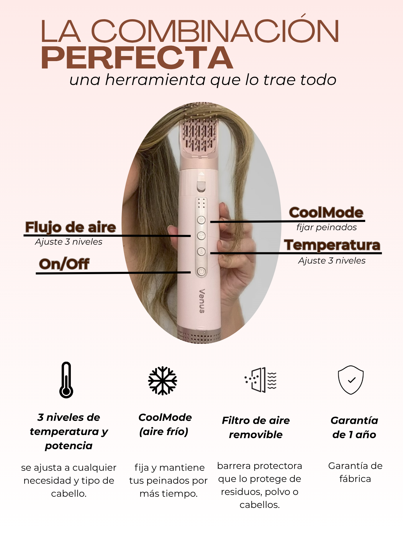 VenusAirmax es un estilizador con 6 cabezales, perfectos para alisar, voluminizar, ondular o secar tu cabello de manera efectiva dándote resultados de salón en menos de 10 minutos.